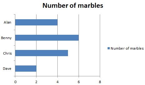 | 7) SOLUTION 1 : 2 + 4 = 6 Alan and Chris have 6 marbles in total. |