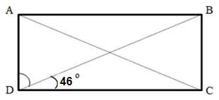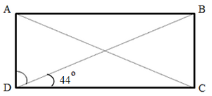 | 4) ABCD is a rectangle. Answer: 46o SOLUTION 1 : 90o - 44o = 46o The value of angle BDA is 46o. |