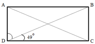 | 7) ABCD is a rectangle. SOLUTION 1 : 90o - 49o = 41o The value of angle BDA is 41o. |
