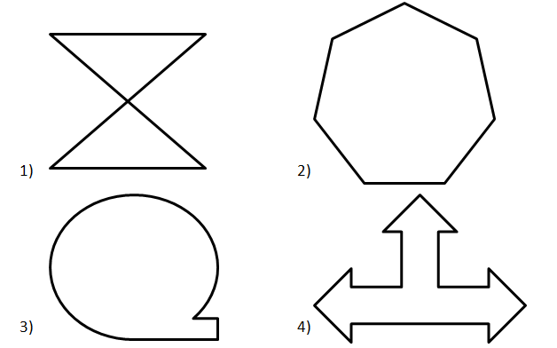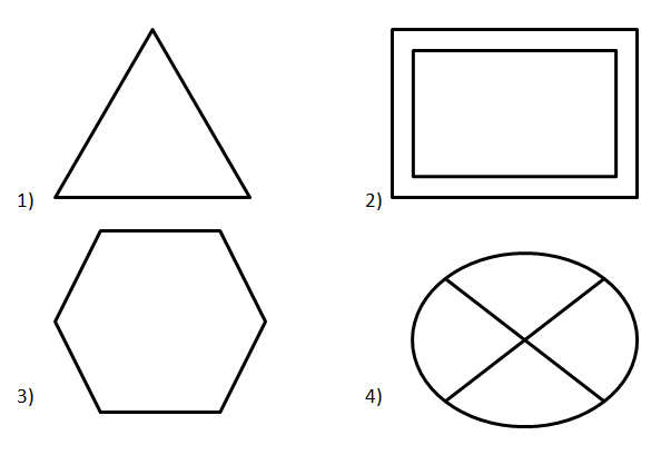 | 1) Which of the following figures has 2 lines of symmetry
