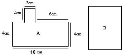 Step 1: Perimeter of Figure A : 2 + 2 + 2 + 2 + 6 + 4 + 4 + 10 = 32 cm Step 2: Since Perimeter of Figure B is the same as Figure A, find one length of Figure B : 32 cm ÷ 4 = 8 cm Step 3: Since Figure B is a square, find the area of Figure B : 8 x 8 = 64 cm2