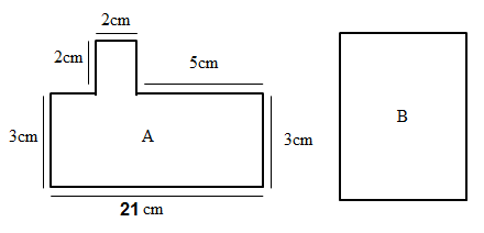 Step 1: Perimeter of Figure A : 2 + 2 + 2 + 14 + 5 + 3 + 3 + 21 = 52 cm Step 2: Since Perimeter of Figure B is the same as Figure A, find one length of Figure B : 52 cm ÷ 4 = 13 cm Step 3: Since Figure B is a square, find the area of Figure B : 13 x 13 = 169cm2