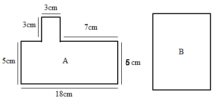 Step 1: Perimeter of Figure A : 3 + 3 + 3 + 8 + 7 + 5 + 5 + 18 = 52 cm Step 2: Since Perimeter of Figure B is the same as Figure A, find one length of Figure B : 52cm ÷ 4 = 13 cm Step 3: Since Figure B is a square, find the area of Figure B : 13 x 13 = 169 cm2