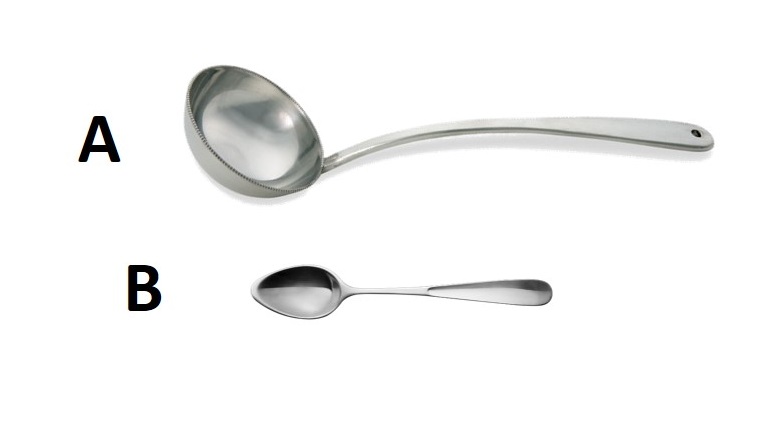 | 2) Which of the 2 utensils, A or B, is more suitable to be used for scooping a greater volume of soup