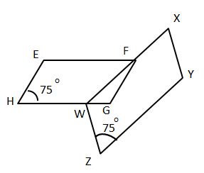 | 2) The figure shown below is not drawn to scale. EFGH and WXYZ are parallelograms. ∠ EHG is 75o and ∠ WZY is 75o. Find ∠ WFG. o Answer:_______________ |